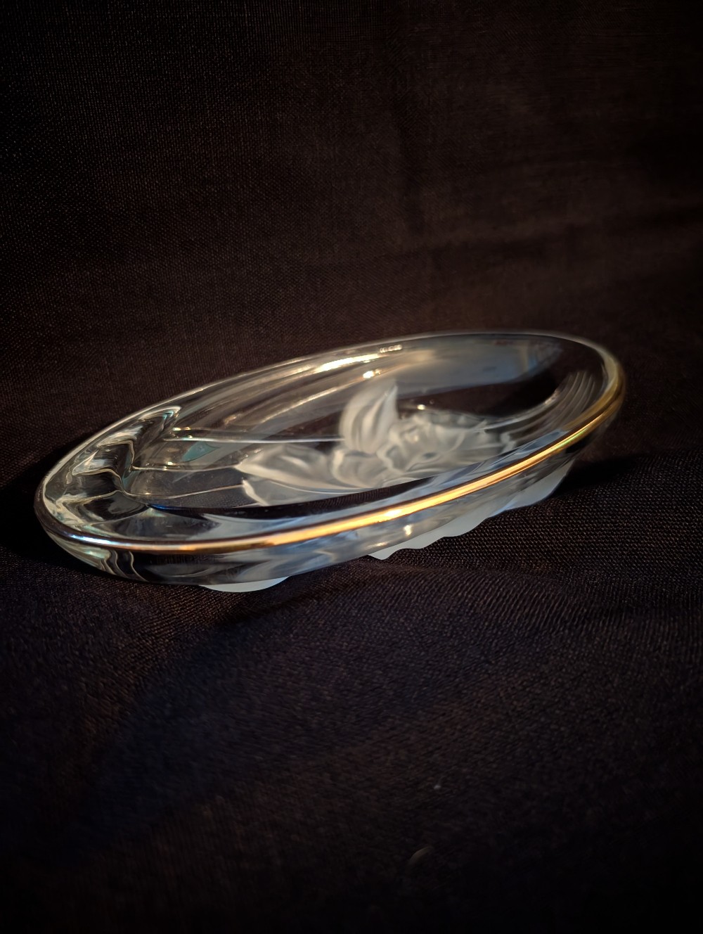 Mikasa Crystal - Candy Dish with Gold Trim and Frosted Orchid Flower (Vintage)