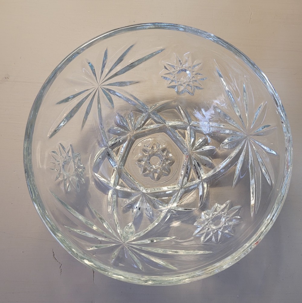 5.25 inch Early American Prescut Glass by Anchor Hocking bowl, also called Star of David pattern. Clear glass. Excellent vintage condition.