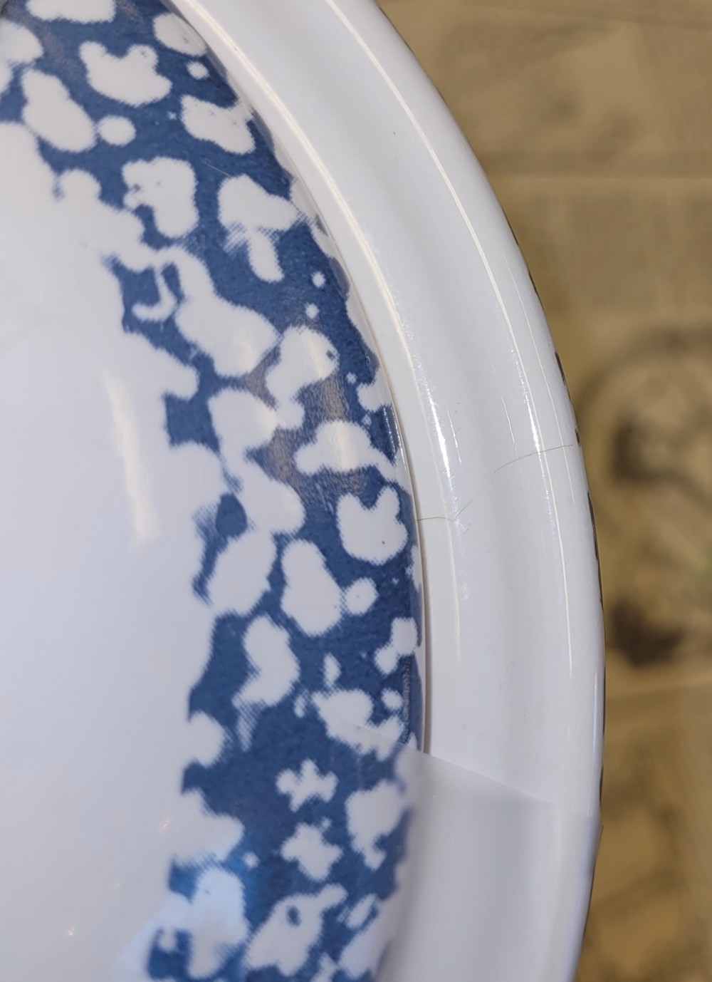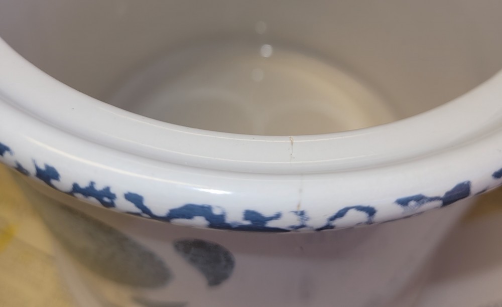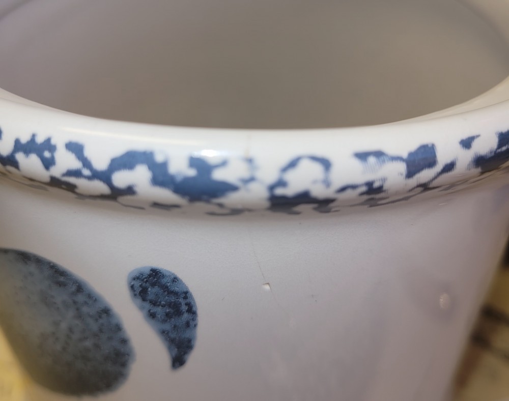 Vintage 1980s Blue Hearts Spongewear design by Jay Imports (pattern also produced by Corelle). Usable vintage condition, with one chip, one crack. slightly visible on exterior. Otherwise, all color looks great. Lid gasket not present. Approximately 7 inches tall with lid. Would be a great holder for coffee filters, K-cups or tea bags!