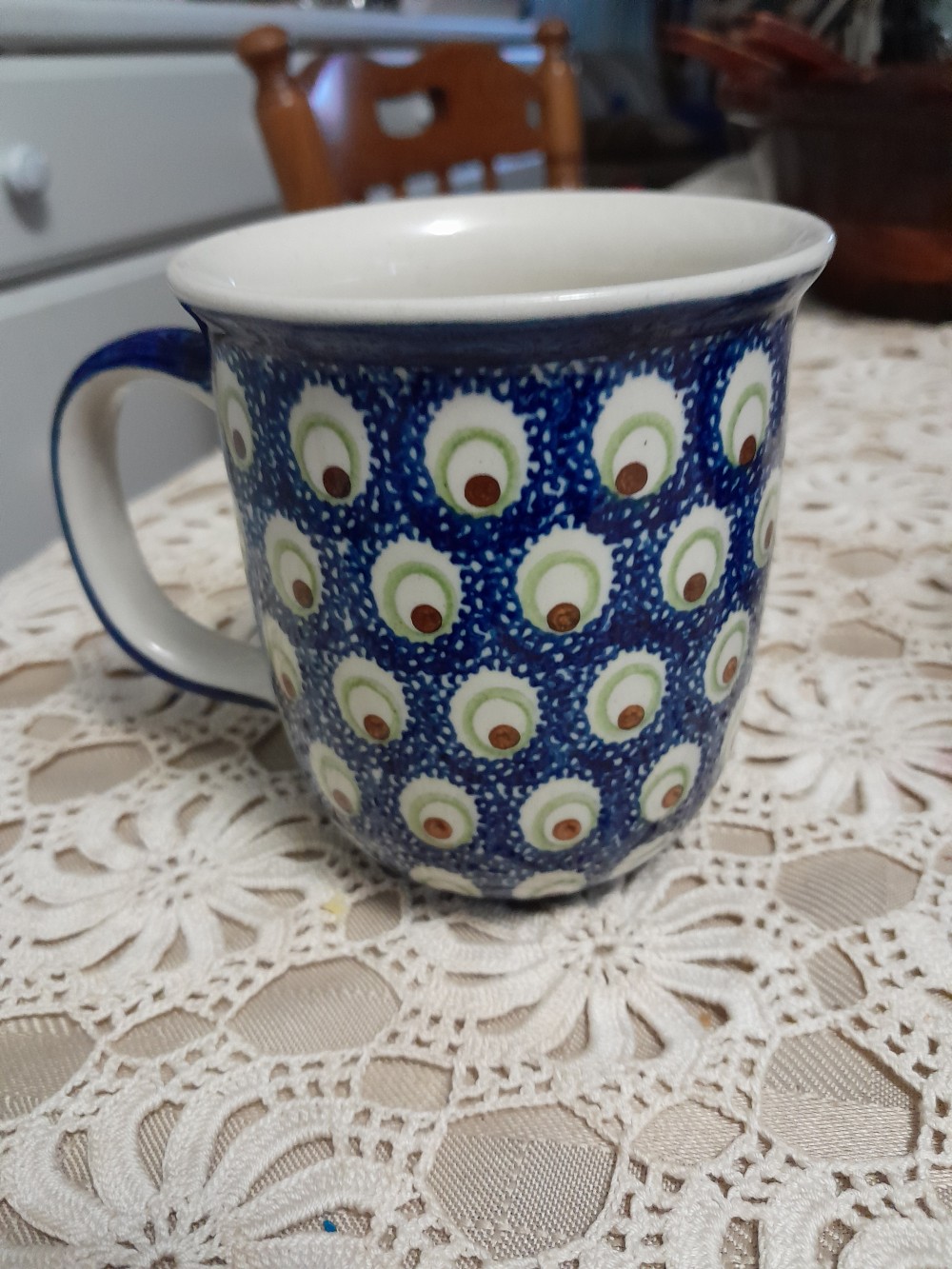 Polish Pottery coffee mug Peacock pattern