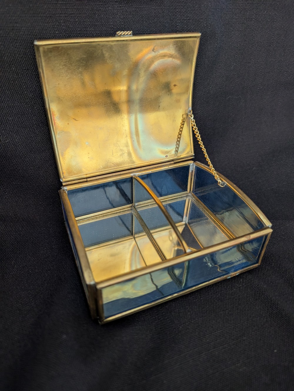 Trinket Box Brass Alloy with Stained Glass - Handcrafted by Via Vermont with Figurines by Priscilla Hillman.