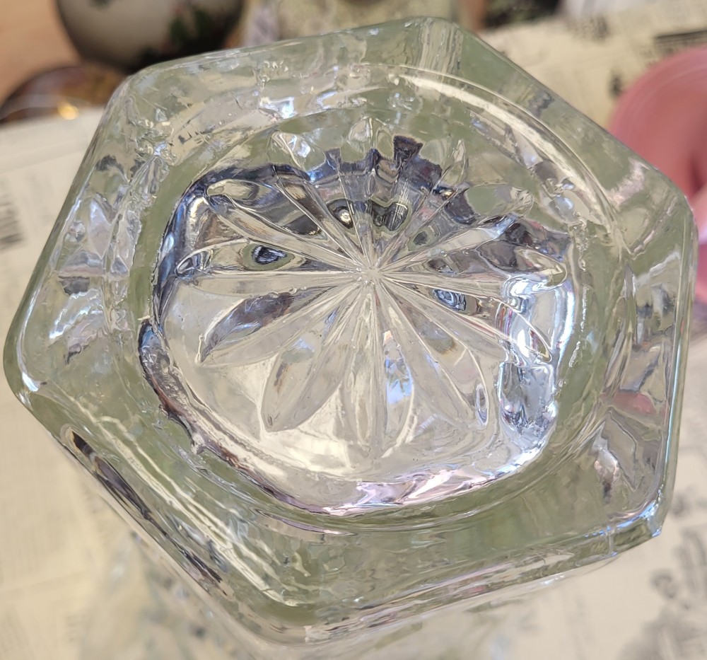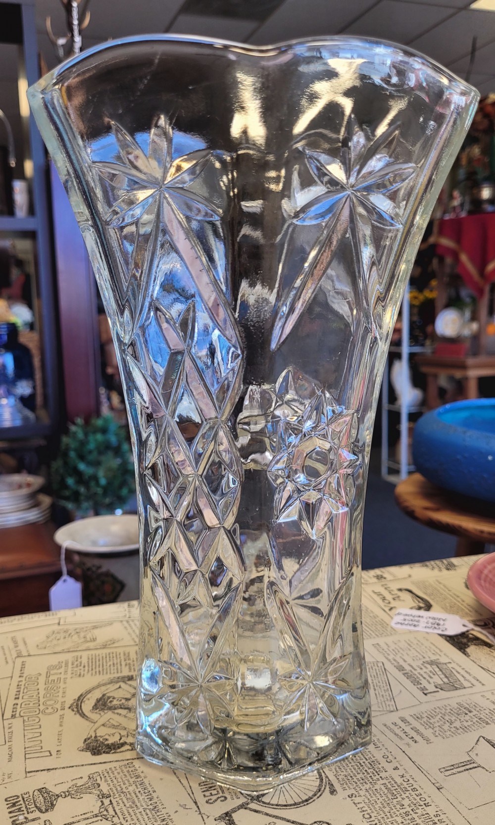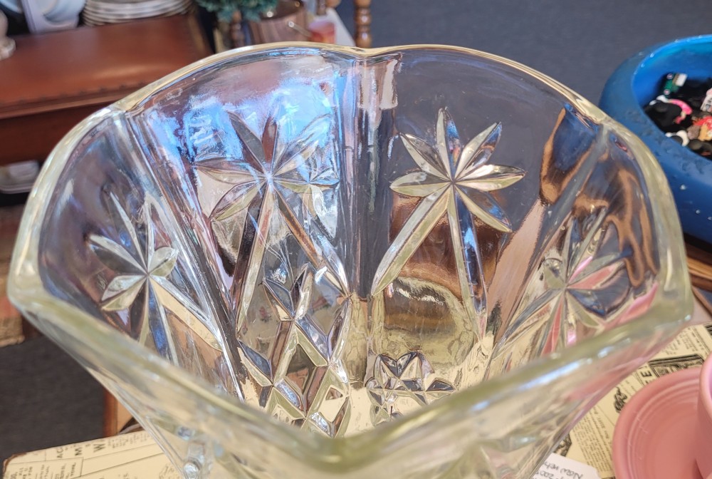 Anchor Hocking Early American Press Cut vase. Excellent vintage condition, no chips or cracks. Minor "wrinkles" present as a result of manufacture. Approximately 10 inches tall.